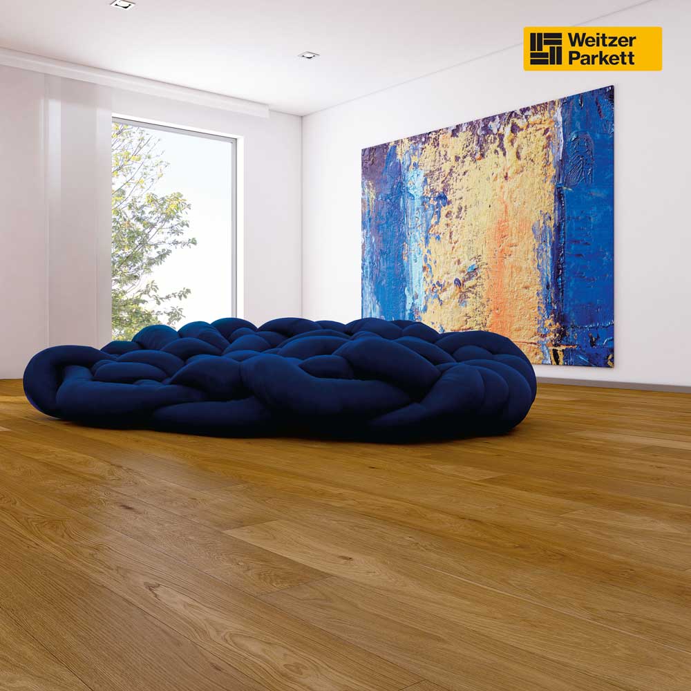 Naturbelassenes Holz ist ein nachhaltiger Werkstoff: Es gibt keine schädlichen Emissionen ab, reguliert die Luftfeuchtigkeit und ist am Ende seiner Lebensdauer biologisch abbaubar. Massivparkett lässt sich mehrfach abschleifen und renovieren – das macht es zu einer Investition, die Generationen überdauert.